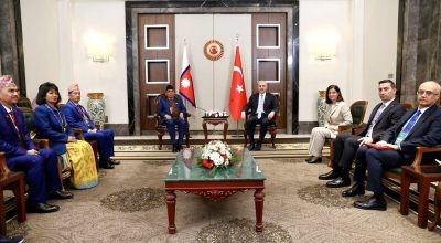 इस्तानबुल (टर्की) । राष्ट्रिय सभा अध्यक्ष नारायण प्रसाद दाहाल र टर्कीको संसद ग्रान्ड नेशनल एसेम्बलीका सभामुख नुमान कुर्तुल्मुसबिच शिष्टाचार भेटवार्ता भएको छ । अन्तर व्यवस्थापिका संघ (आइपियू) को १५२औँ महासभामा सहभागी हुन इस्तानबुलमा रहनुभएका अध्यक्ष दाहालले टर्कीको संसदका सभामुख नुमान कुर्तुल्मुससँग शिष्टाचार भेट गरेका हुन् । भेटमा दुई देशबिचको सम्बन्ध,