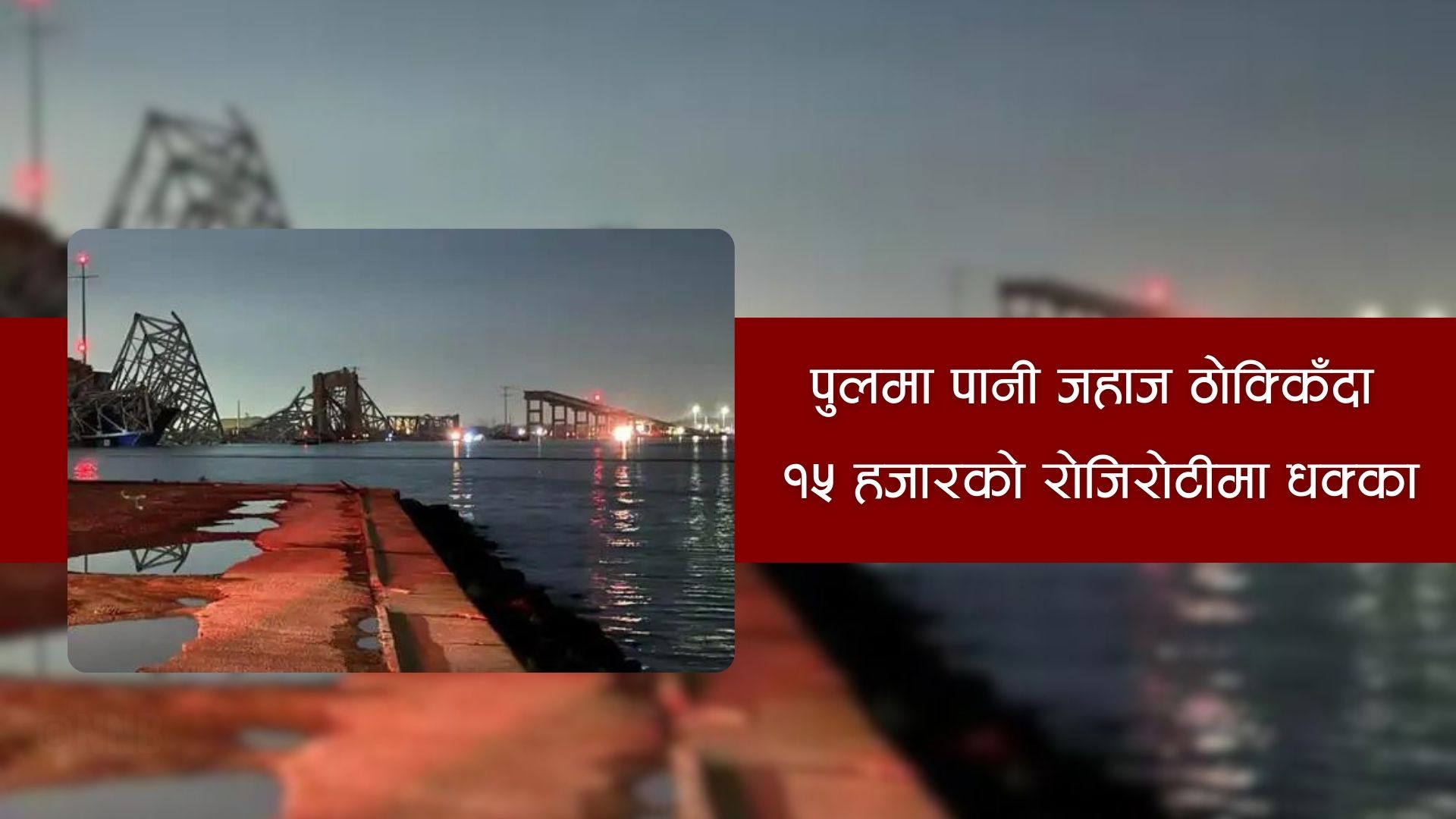 काठमाडौं । अमेरिकाको मेरिल्याण्डमा एउटा कार्गो जहाज ठोक्किएपछि ‘फ्रान्सिस की ब्रिज’ को एक भाग भत्किएको छ । अमेरिकी समय अनुसार बिहान १.३० बजे भएको यो घटना भएको हो । पुलमा ठोक्किएपछि आगो लाग्यो र जहाज डुब्यो ।