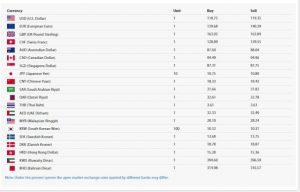 साउन १०, काठमाडौं । नेपाल राष्ट्र बैंकले आज आइतबारका लागि विदेशी मुद्राको विनिमय दर तोकेको छ । अमेरिकी डलर एकको खरिददर ११८ रुपैयाँ ७५ पैसा र बिक्रीदर ११९ रुपैयाँ ३५ पैसा रहेको छ ।