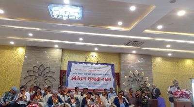 काठमाडौँ । नेपाल वैदेशिक रोजगार व्यवसायी संघको आसन्न निर्वाचनलाई लिएर प्रचार प्रसार कार्यक्रमहरू भव्य रुपमा भइरहेका छन् । प्रगतिशील वैदेशिक रोजगार व्यवसायीमञ्चका पूर्व अध्यक्ष नरेश गेलाल नेतृत्वको संयुक्त व्यावसायिक समूहले आज अपरान्ह काठमाडौँको बसुन्धरा स्थित बसुन्धरा पार्टी प्यालेसमा चुनावी प्रचार कार्यक्रम गरेको छ । नरेश गेलाल नेतृत्वको संयुक्त व्यावसायिक समूहललाई शुभकामना दिन उद्योगमन्त्री दामोदर भण्डारी, नेकपा एमालेका केन्द्रीय सदस्य रचना खड्का समेत कार्यक्रम स्थलमा पुगेका छन् । निर्वाचन प्रचार प्रसारको अन्तिम चुनावी कार्यक्रम भएकोले व्यवसायीहरूको हलभित्र र बाहिर खचाखच देखिएका छन् ।निर्वाचन प्रचार प्रसार समितिका संयोजक सरोज कुमार पोखरेलको संयोजकत्वमा उक्त कार्यक्रम भएको हो ।