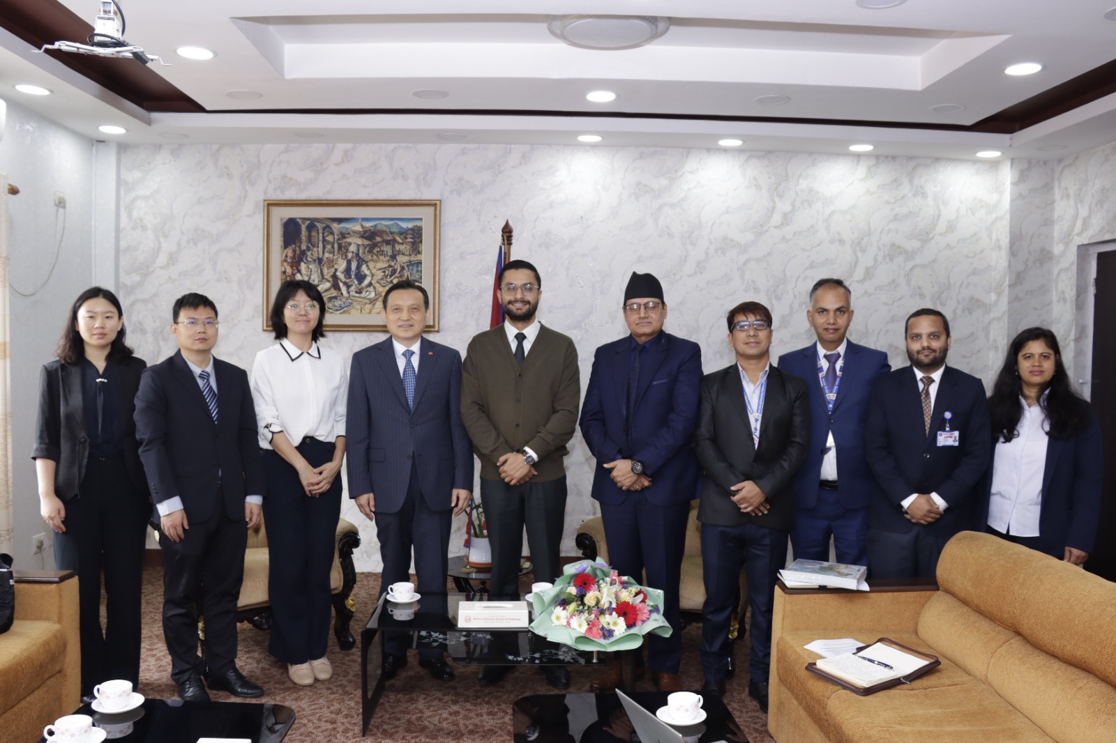 सिंहदरबारस्थित मन्त्रालयमा सोमबार भएको भेटमा नेपालको शिक्षा, विज्ञान तथा प्रविधि र खेलकुदसहितको क्षेत्रमा चीन सरकारको सहयोग र सहकार्यबारे कुराकानी भएको थियो ।