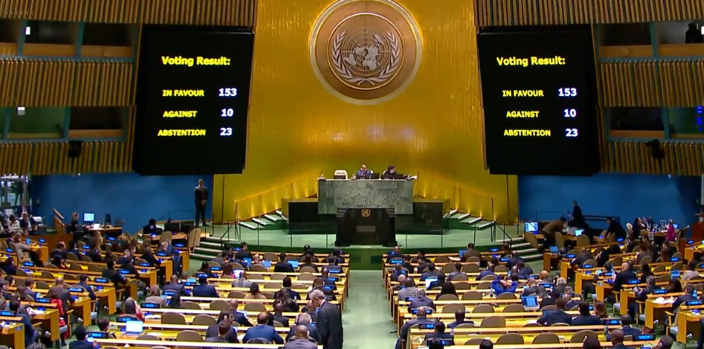 काठमाडौं । इजरायल–हमास द्वन्द्वका बीच गाजामा तत्काल युद्धविरामका लागि पेश गरिएको प्रस्ताव संयुक्त राष्ट्रसंघको महासभा (युएनजीए)को आपतकालीन बैठकमा पारित भएको छ ।