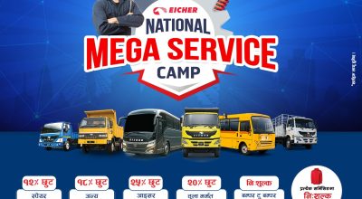 काठमाडौं, बतास एम.ए.डब्ल्यू. कमर्सियल भेइकल्सले EICHER ग्राहकहरूका लागि विशेष रूपमा राष्ट्रिय मेगा सर्भिस क्याम्पको सुरुवात गरेको छ। यो क्याम्प मंसिर १७, २०८२ देखि मंसिर २९, २०८२ सम्म सञ्चालन हुनेछ। यस पहलको