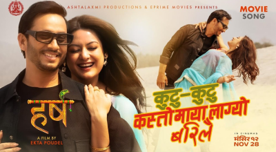 काठमाडौं । एकता पौडेलको डेव्यु निर्देशनमा निर्माण भएको सिनेमा ‘हर्ष’को दोस्रो गीत ‘कुटु कुटु कस्तो माया लाग्यो बरिलै’ सार्वजनिक गरिएको छ । शुक्रबार सार्वजनिक सिनेमाको गीतमा सिनेमाका दुई मुख्य कलाकार