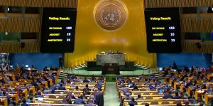 काठमाडौं । इजरायल–हमास द्वन्द्वका बीच गाजामा तत्काल युद्धविरामका लागि पेश गरिएको प्रस्ताव संयुक्त राष्ट्रसंघको महासभा (युएनजीए)को आपतकालीन बैठकमा पारित भएको छ । १५३ देशले गाजामा युद्धविरामको पक्षमा मतदान गरेका छन्